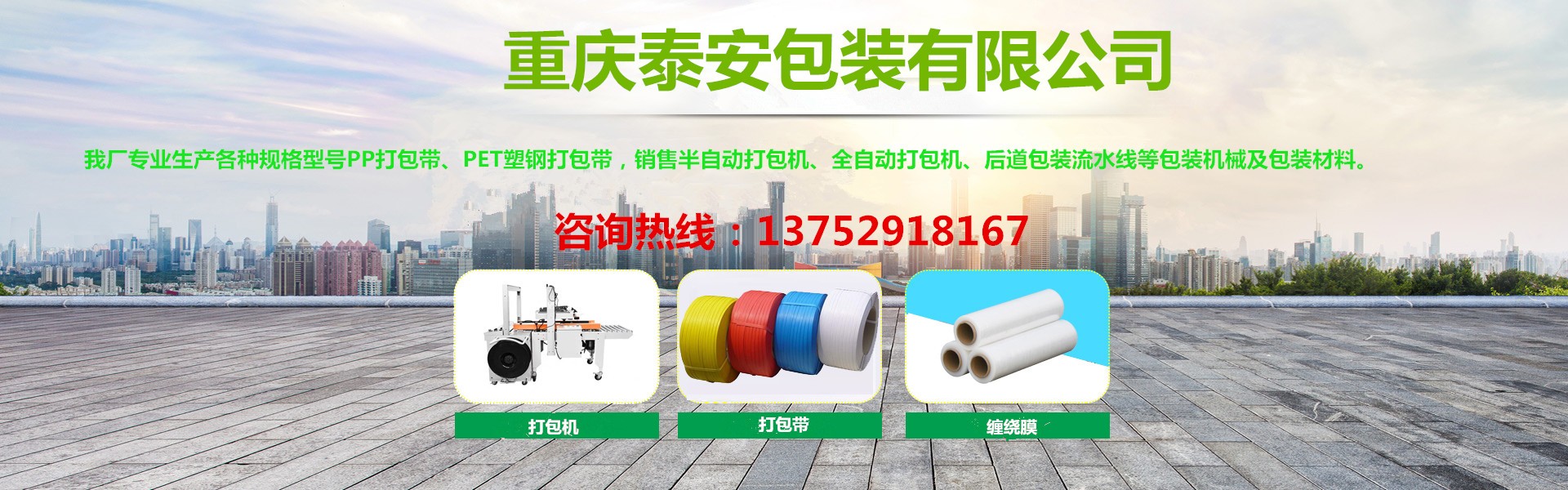 重慶泰安包裝有限公司(電話:13752918167)是專業(yè)生產(chǎn)各種打包帶、塑鋼帶、纏繞膜、膠帶,銷售打包機、纏繞機、封箱機、無人化流水線等各種包裝機械、包裝制品、包裝材料一體化的優(yōu)秀包裝企業(yè),始終堅持“穩(wěn)步擴張、精益管理”的方針,堅持“換位思考,了解客戶需求,主動服務,超越客戶期待”的服務理念,以熱忱的服務、優(yōu)良的品質(zhì)、靈活的機制、創(chuàng)新的技術,向各新老客戶提供最優(yōu)質(zhì)、優(yōu)價的產(chǎn)品和服務,具有對系列產(chǎn)品自主研發(fā)創(chuàng)新能力,能夠獨立根據(jù)用戶要求制版打樣。近十年來受到廣大客戶的信任,產(chǎn)品銷售遍及全國各大城市,與客戶形成自由平等、互利互惠的戰(zhàn)略合作關系,平均年銷售量2000多噸。